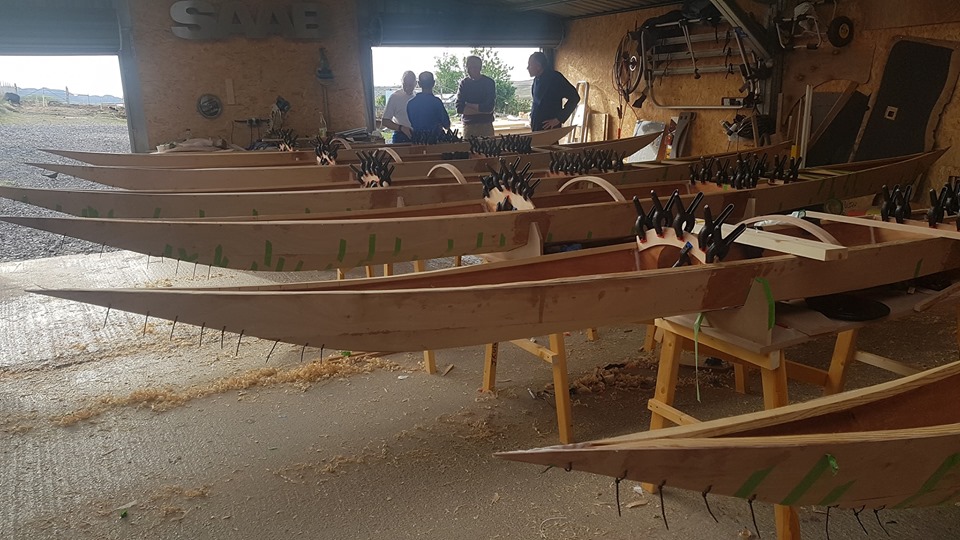 The latest news from the Shrike project is that there are now 183 confirmed constructions. This week we had news and photos of seven Shrikes in a Japanese kayak club, and completion of six Shrikes on the first kayak-building course at the Archipelago Folk School in Scotland, as in the photo: