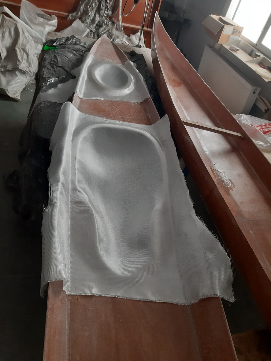 Оклейка внутри - ткань 120 г/м2, снаружи - 100 г/м2, усиление палубы в зоне кокпита 163 г/м2, люков 100 и 120 г/м2 (какие были подходящие обрезки).