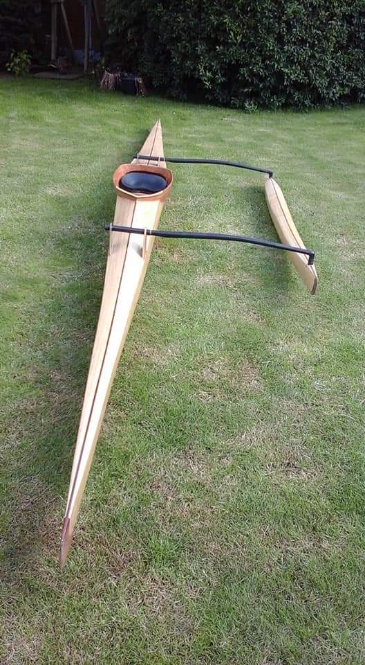 2. Высота аутриггеров над водой из вашего ролика плохо понятна. В моём представлении нужно минимум вот столько ... Но не с одной стороны, как на фото, а с двух сторон должно быть столько. И ещё нужно поставить аутриггеры под углом к поверхности воды, чтобы чирканье было глиссирующим и как можно более коротким.