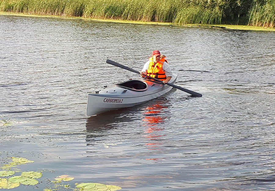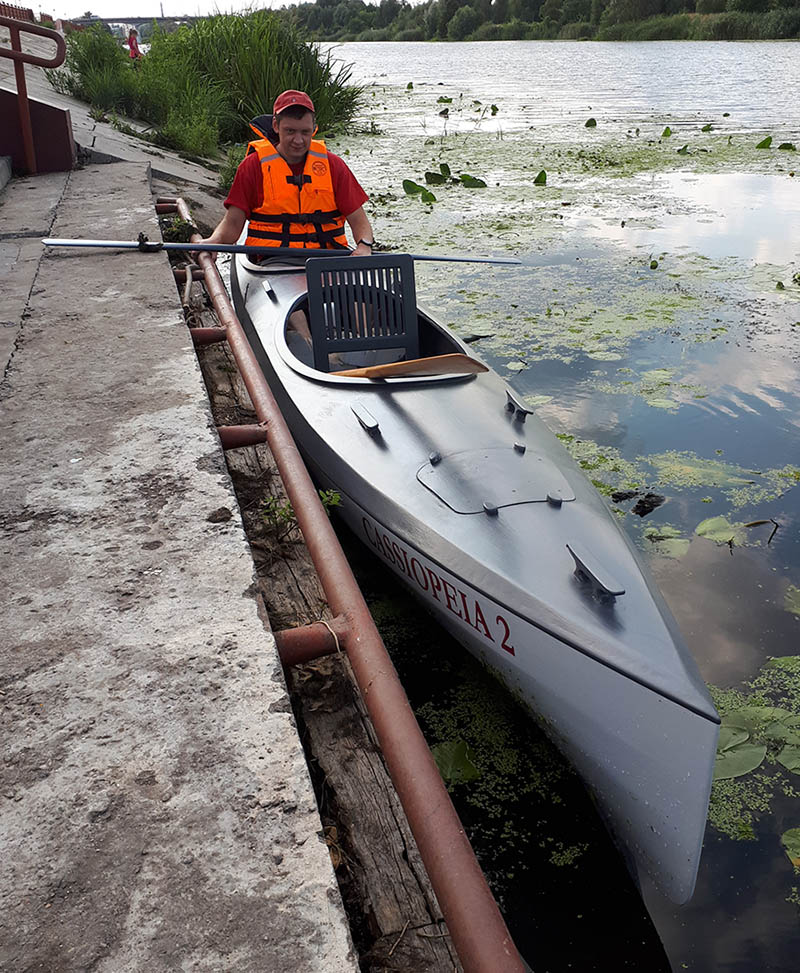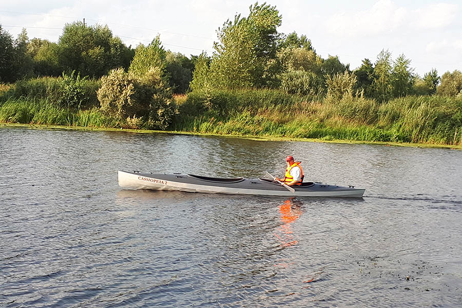 На воде Кассиопайа 2 вела, как и предполагалось. Вдвоем ожидаемо легко шла, несмотря на вес. Длина здесь сыграла роль. С одним тоже легко шла-что не совсем ожидалось. По остойчивости-пробовал стать в рост- и получилось. Только одному тяжело развернуться из-за ветра - нос поднят и лодка стремится при боковом ветре увалиться. Но против ветра при острых курсовых углах этого особо не заметно. Это придется учитывать или грузить нос.Еще окончательно не решил с ножными опорами. Подставил пока блоки пенопласта.