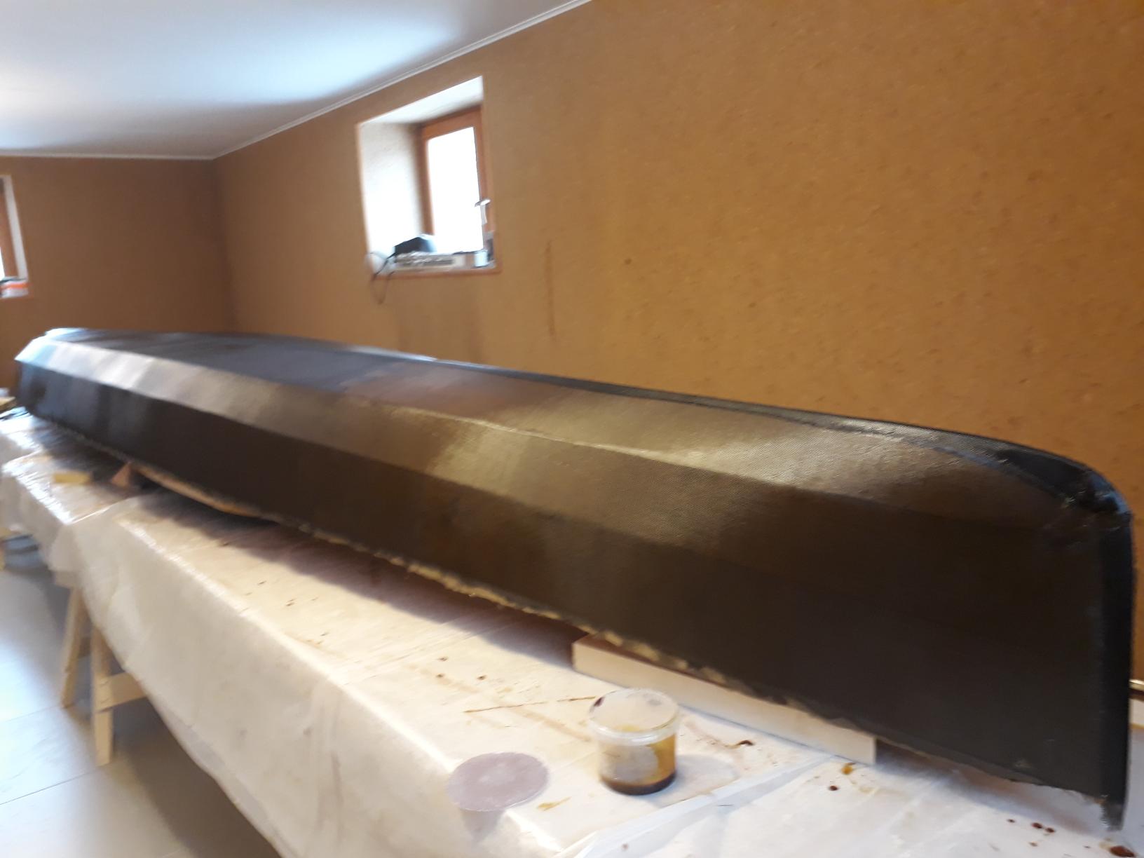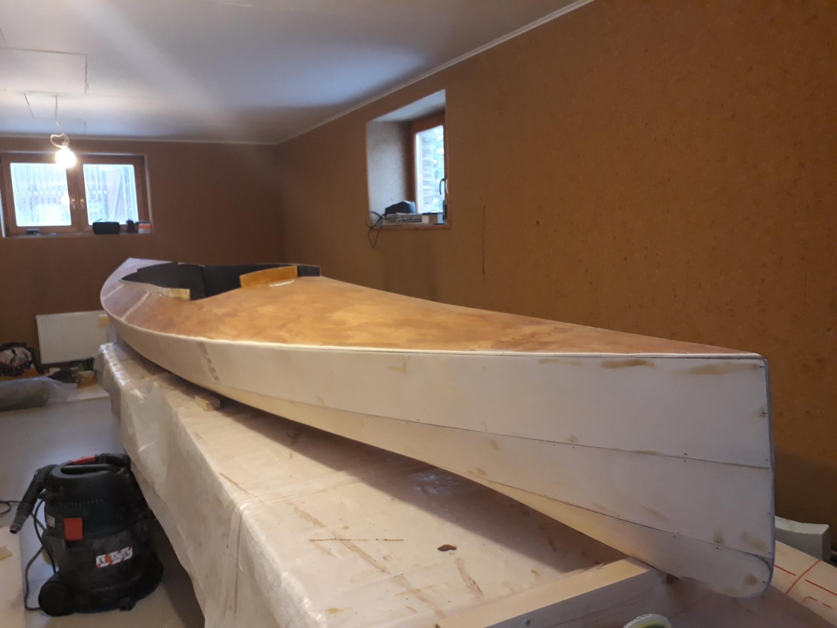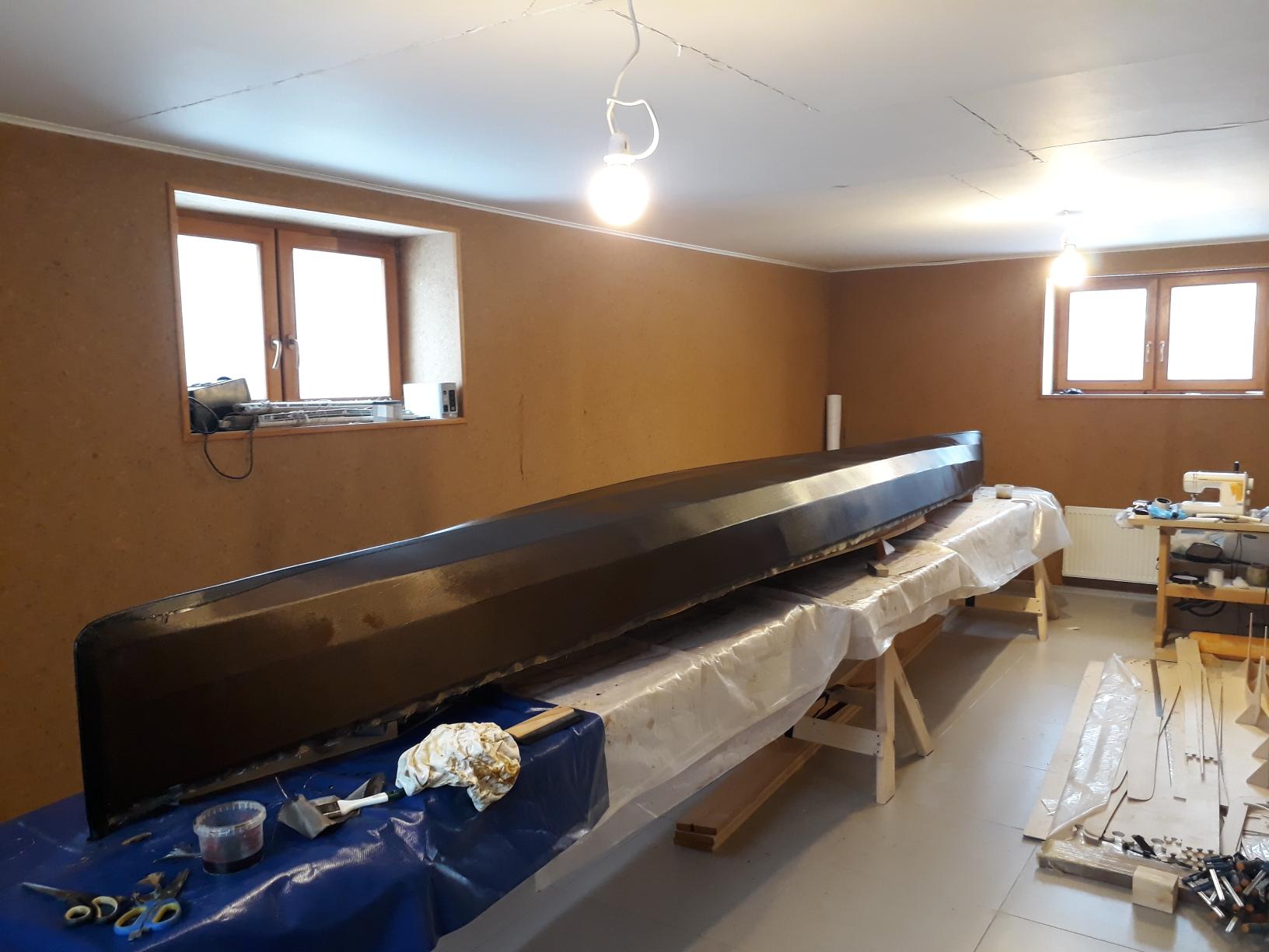Покрашена, впереди шлифовка, изготовление весел и станка