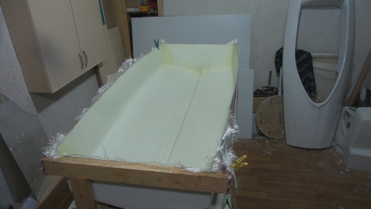 Выклеил сидушку. Вот она усиливается по верху (в перевернутом виде). Тут тоже промазывал смолой и лепил ткань. Так как деталь не большая я сразу набрал 3 слоя. Завтра гляну что получилось.
