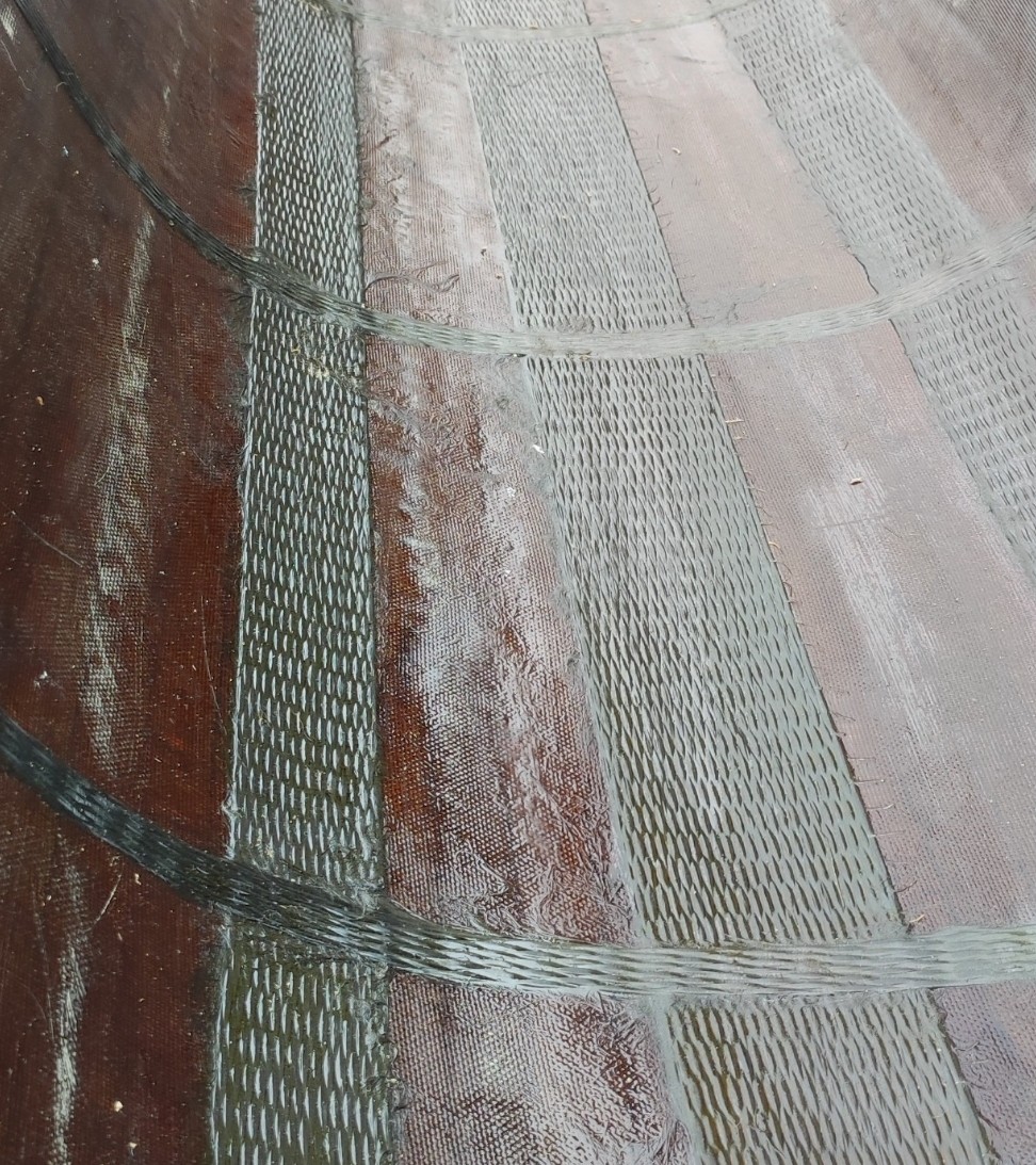 Другая проблема -- хз, как называется. Места, где смола ведёт себя, как будто не смачивает поверхность: просто расползается в стороны, остаётся непокрытое пятно. Хотя она точно смачивает. На руле умудрился побороть кисточкой. Но 5м лодку я так не смогу сделать. Никакого жира там нет (обрабатывал всё спиртом, потом даже в руки не брал).