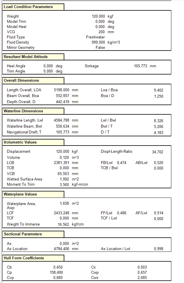 Здесь эти параметры из проектов 17-ти футовых каяков. Параметры остойчивости (статической, динамической)