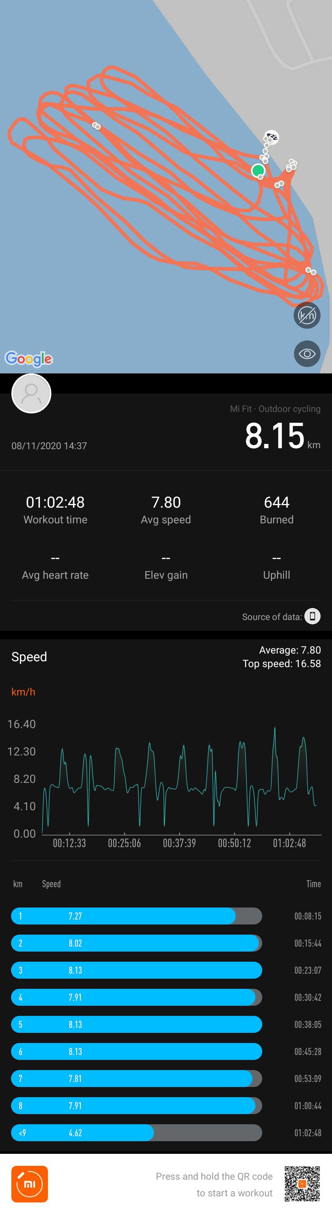 Сегодня волны были как на море - наверное до 70 см! Макималка на Волке была 16.6 км/ч. Это я измерял в MiFit. Этот софт весьма точно текущую скорость вычисляет.