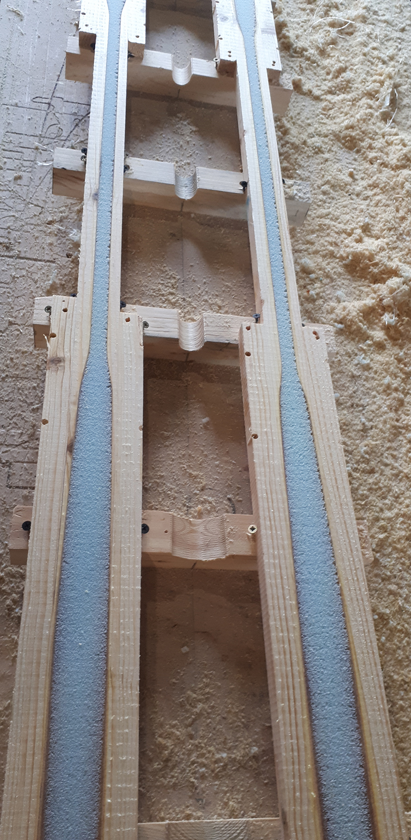 Можно считать задуманную технологию изготовления такого весла отработанной. Вес весла после фрезеровки получился немного менее 740 грамм. После отделки шлифовкой и покрытием ХартОлем грамм на 20-30 увеличится. В следующем объем пены увеличу за счет уменьшения на 1-2 мм толщины стенок-они получатся 3-4 мм. Так же можно дать не один, а два слоя стеклоткани. Видимо реально сделать весло из твердых пород весом около 750 грамм. Заполнитель будет вырезаться из пены-он хорошо пакуется с стеклотканью и выдавливает лишнюю смолу.