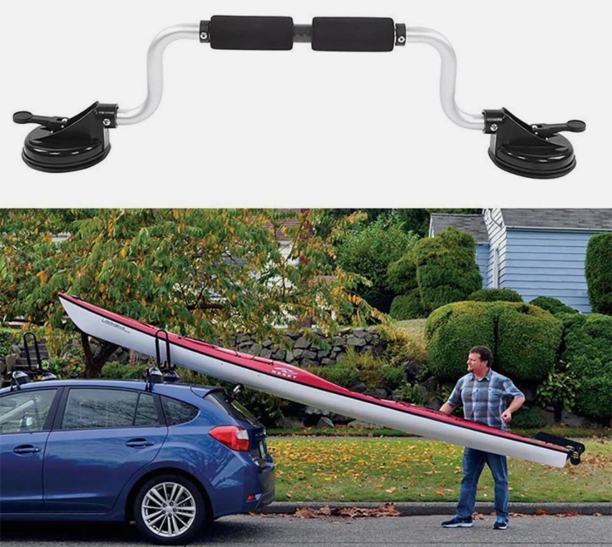 Про срыв присоски под нагрузкой - тоже, думаю, бывает. Но тут всё просто - рычажок присасывания на присоске должен затягиваться с хорошим усилием, это вам маркер, что всё хорошо. Если усилие небольшое, то значит присоска стоит чуть наперекос, не плотно прилегает. Поправить и повторить присасывание. Да и потом - ну сорвётся, ну и что? Нос каяка просто ляжет на крышу, наврят-ли что-то испортит