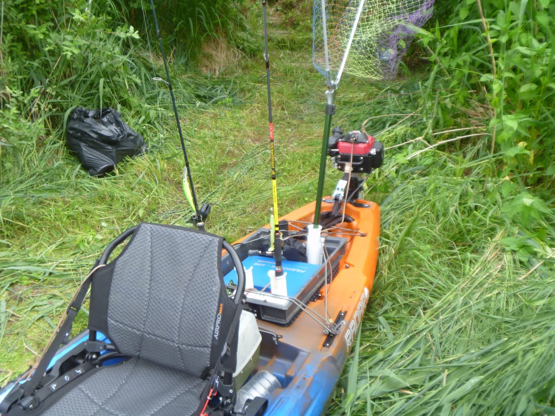 На корме водрузился старый добрый водометик Кальмар,который у меня уже 12 лет,и кочевал по всем моим каякам, был и на Пальмико 100,на Трайденте, и вот сейчас добрался и до Радара...