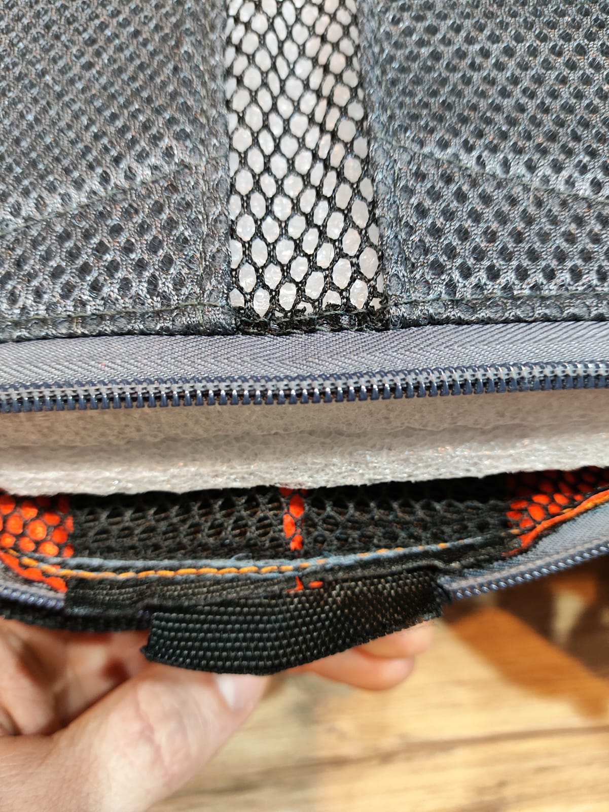 Передний карман, молния на нем из за кроя заламывается, заедает и кажется долго не проживет. Карман внутри вообще не ТОП, «карман» для телефона просто ткань без подклада, в передней стенке кармана торчит уплотнительная пена, почему?