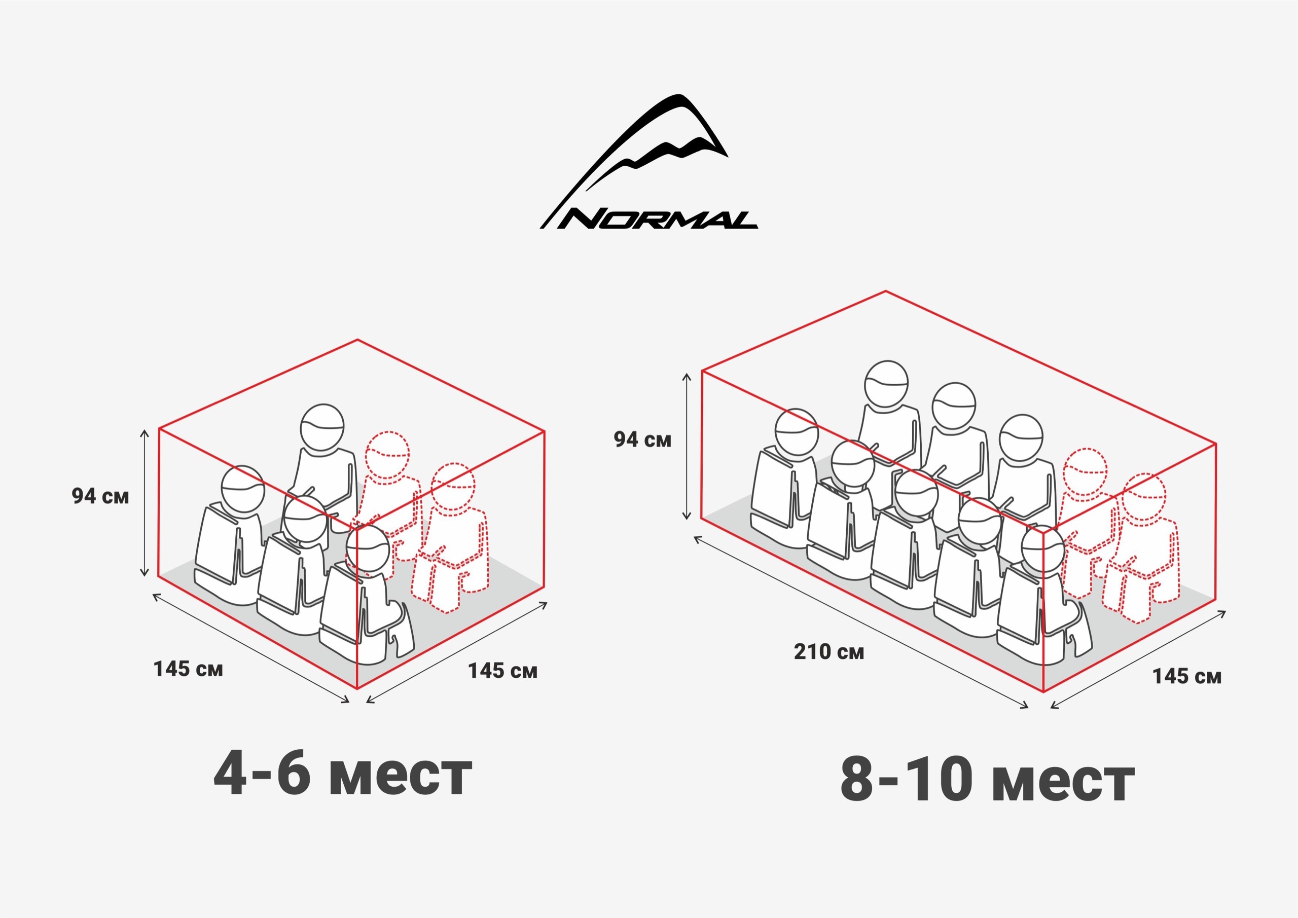 8-10 мест (210*145*94 см)/в сложенном виде 30*15 см 880 гр, по факту вес получился немного больше - 1082гр