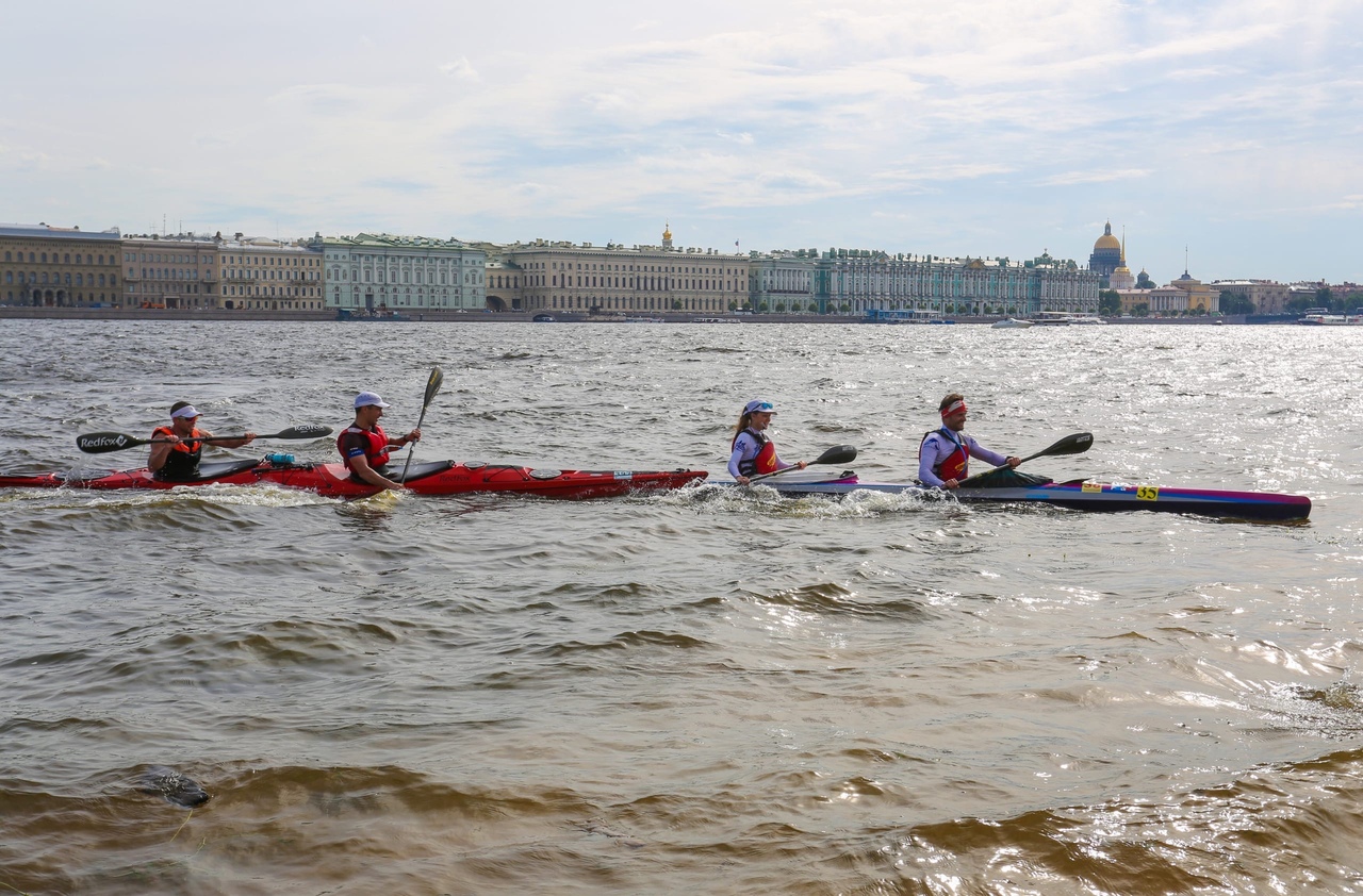 Основная сложность марафона для меня заключалась в городском участке Невы, где река закована в гранитные набережные и оживленное движение, там поверхность воды не успокаивается совсем, и присутствует очень неприятная и сложная "отраженная" волна, другими словами как просто "болтанка" и не назвать.