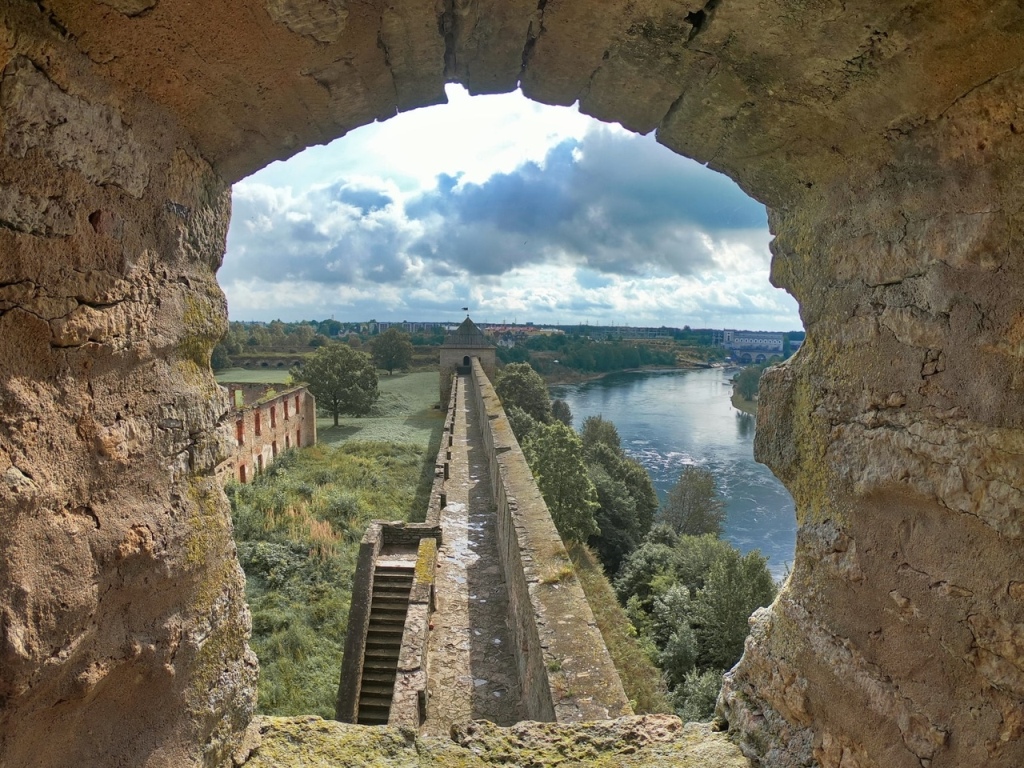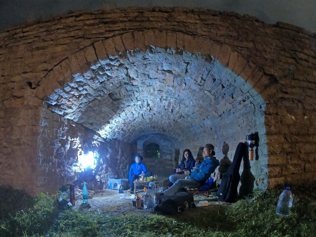 Начинать должны были на байдарках, поэтому накануне вечером необходимо было сдать велосипед в транзитную зону, расположившуюся в Детском оздоровительном лагере Россонь на одноименной р. Россонь, впадающей в р.Нарову почти у самого Финского залива. По ней мы должны были подняться последние 4 км до транзитной зоны. Там же была выдача стартовых пакетов. Велосипед проверили на предмет исправности. Закрепили номер, поставили в транзитку. Поехали в Ивангород, закинули байдарку на променад (благоустроенный берег в Ивангороде). Хотя это можно было спокойно сделать с утра. Отправились ночевать на территорию крепости. Да-да, официально было согласовано сделать кемпинг за стенами крепости XV века! Выделенная поляна на территории крепости идеально подходила для кемпинга. Без преувеличения. В наличии несколько углублений в стене под бойницы в форме гротов, там некоторые команды разместились со столиками и стульчиками. Выглядело очень уютно. При этом крепостные стены закрывают от ветра. Главным условием было не покидать территорию крепости после 21 часа, так как она находится непосредственно у границы и пункта пропуска. В следующем году, если предоставится такая возможность, то обязательно воспользуйтесь. Последний раз я так круто стоял с палаткой 15 лет назад, когда в Крыму мы ночевали рядом со стенами Крепости Каламита в Инкермане (сейчас туда уже не пускают).