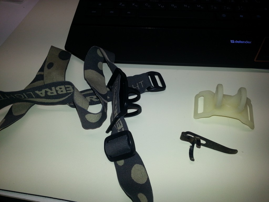 Белая налобная резинка - светонакапливающая, приколько потому как фонарь легко найти в темноте но я ее снял потому что на самом деле посчитал что нет смысла носить на лбу ночью светящуюся хрень которую невозможно скрыть - если я хочу себя обозначить что я могу это сделать другими способами. Другими словами я ее пользовал от силы пару раз пока не заметил что она светится и после этого заменил на темную.