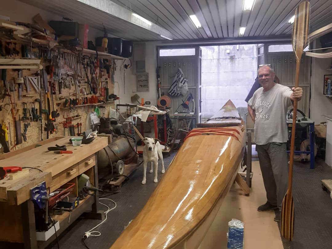 Здравствуйте, пишу просьбе мужа, он не говорит по- русски, но хочет найти друзей по увлечению. Он сделал настоящий деревянный каяк, чертежи выписывал из Америки, за деревом ездил в Рим, а туда оно попало из Канады - американский кедр; длинна каяка - 5.25 м., американский кедр, покрытие из fiberglass в 2 слоя, 2 слоя эпоксидной прозрачной смолы, 8 слоёв защитного лака от UV лучей, который гарантирует, также, устойчивость в солёной морской воде, большой рундук ( багажник🙂), выдвижной руль, формованное сиденье, весло 2.25 м. Прилагаю фотографии. Сейчас делает второй, поменьше.🙂