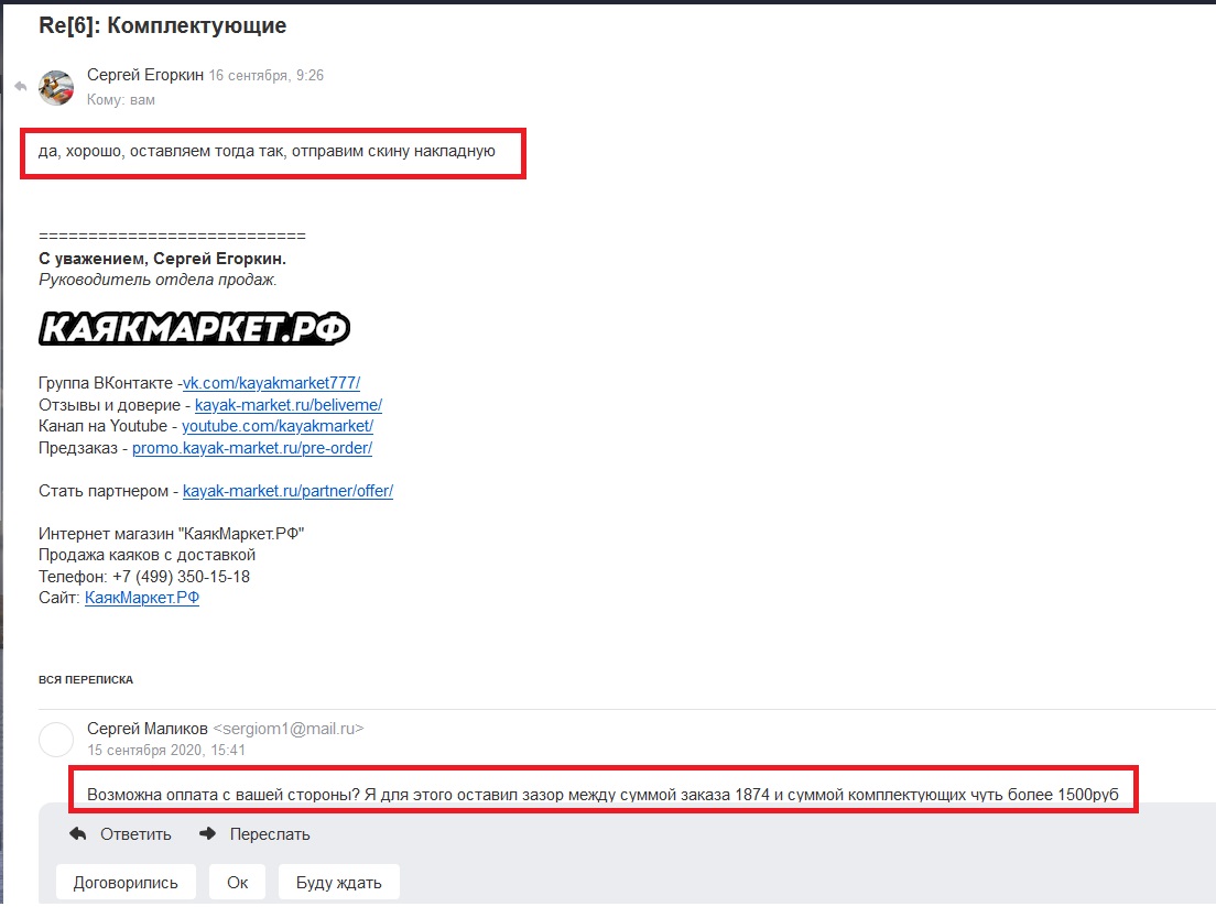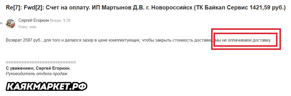 Но и тут не обошлось без приключений, тупости и наглости Каяк Маркета в лице руководителя Мартынова Дениса Валерьевича и его менеджера Сергея Егоркина.