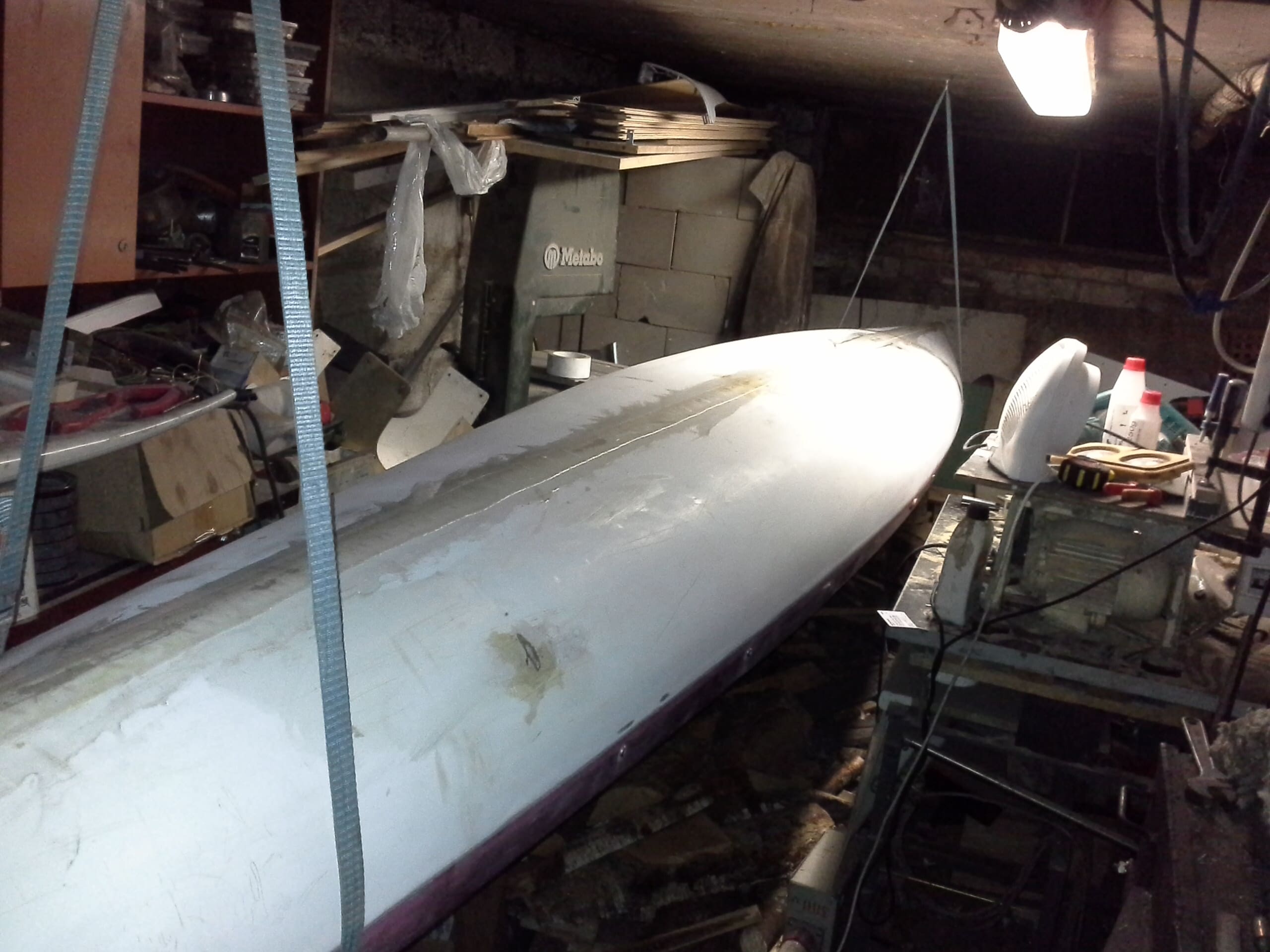3. На ARGO делал ремонт , поставил на киль 2 ленты из стекловолокна и отполировал днище. Каяк стал очень жёстким.