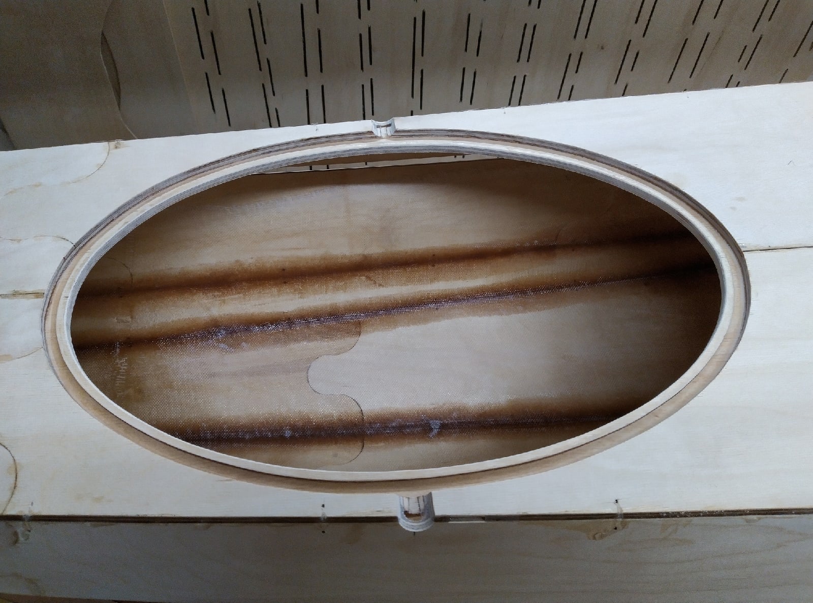 Корпус ламинирован изнутри, организованы овальные лючки.