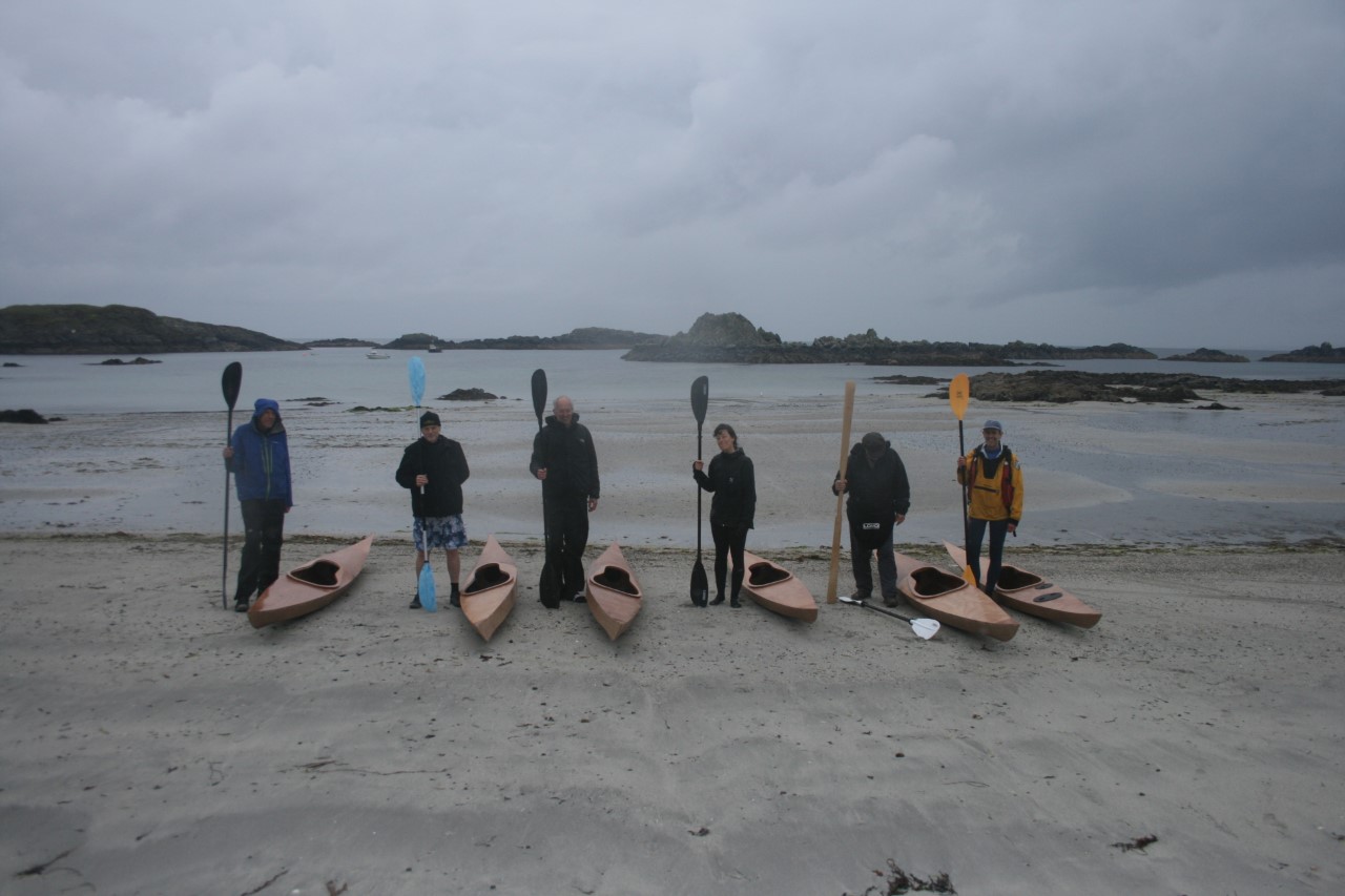 The latest news from the Shrike project is that there are now 183 confirmed constructions. This week we had news and photos of seven Shrikes in a Japanese kayak club, and completion of six Shrikes on the first kayak-building course at the Archipelago Folk School in Scotland, as in the photo: