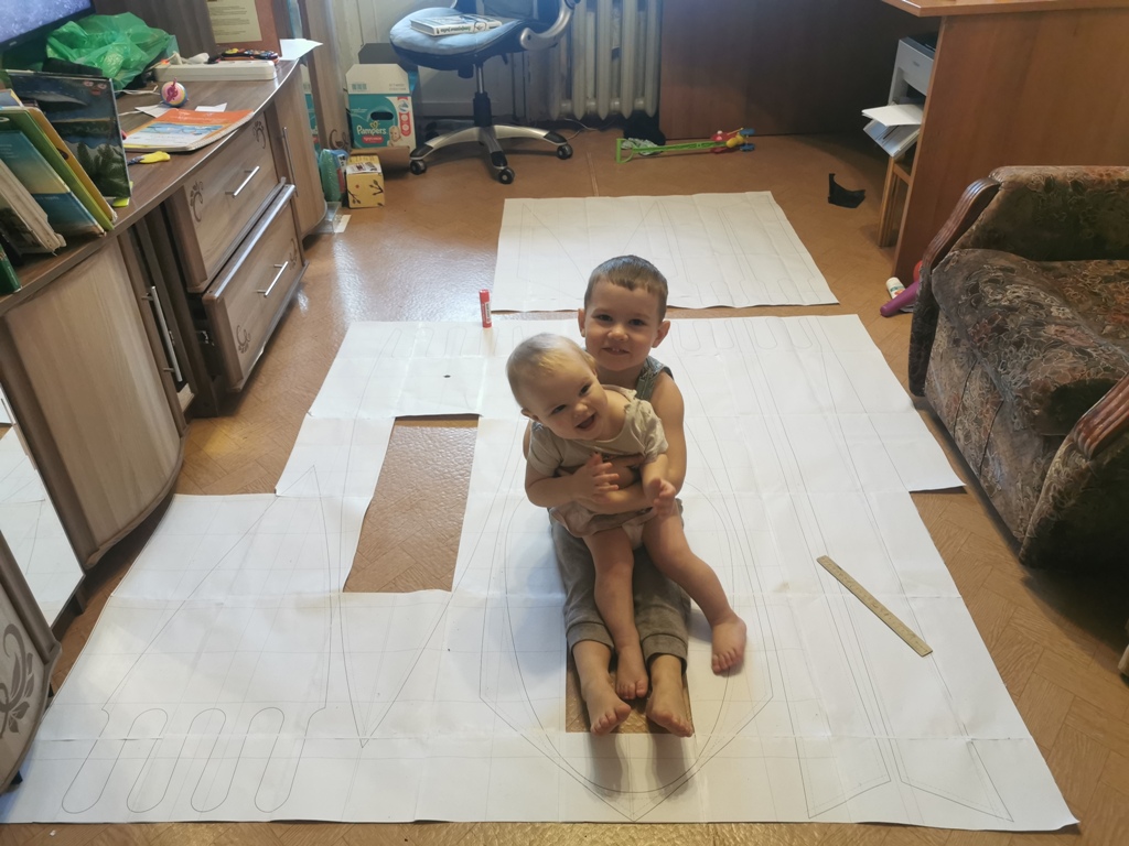 4. Два склееных листа все равно меньше длины лодки, значит, третий лист клеить?