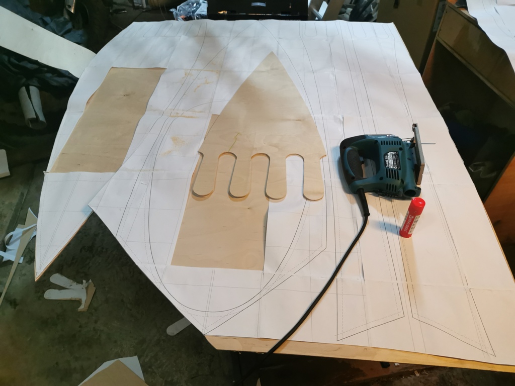 Пазловое соединение выбрал ради попробовать. При ручной распиловке проще сначала склеить лист нужной длины.