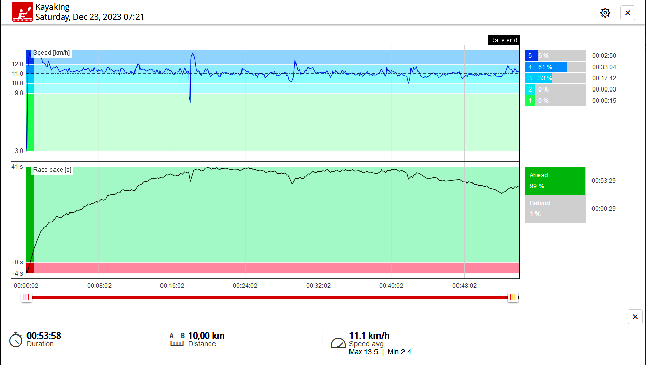 Сегодня ветер ослаб. Чутка прошёлся на К1 Nelo Vanquish. Клёво! Прошёл 2 км всего вдоль бережка, с остановками, но без купания. Под конец даже разогнался до 12км/ч (если верить Страве).