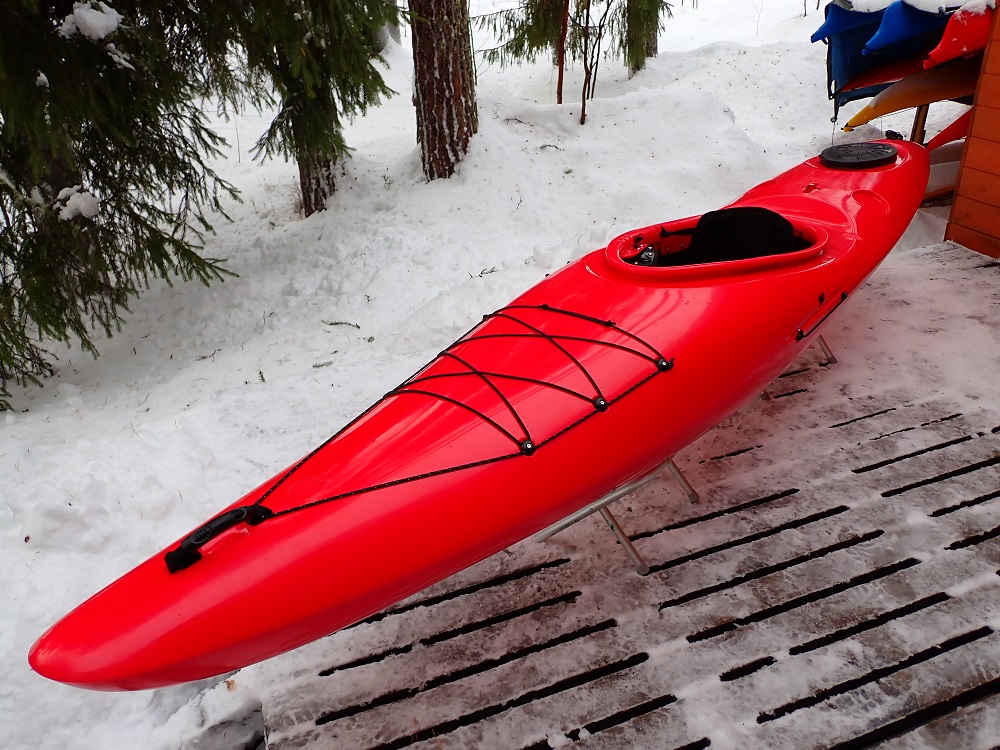 Идею лодки понимаю так - это экспедиционный каяк (огромной вместимости!) предназначенный для сплава по умеренно бурной воде (думаю до 3 к.с. включительно, может и повыше., буду проверять) с преодолением протяженных озерных участков (оборудован скегом) и прибрежных морских акваторий.