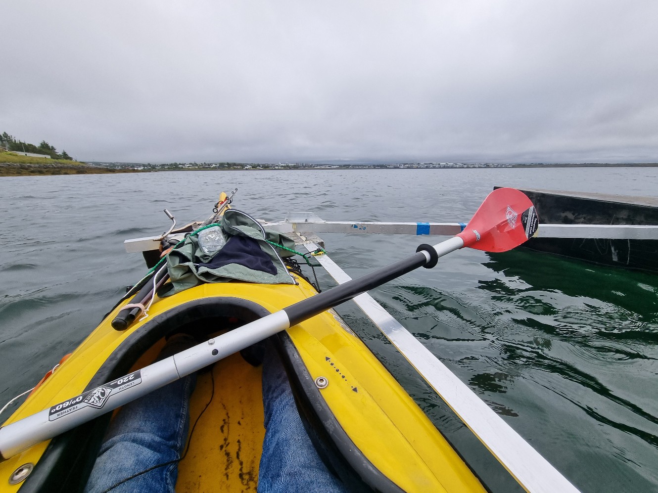 если сидеть на мест пилота , то каяк завален в влево градусов на 5 , вобчем и буду это исправлять переносом крепления балки у аутриггер